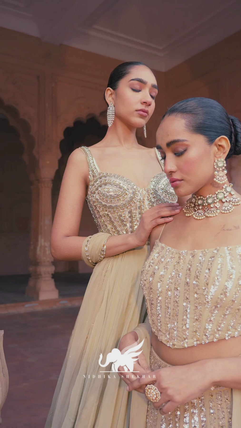 Golden Sequins Embroidered Lehenga Set With Corset Blouse Nidhika Shekhar - Fabilicious Fashion