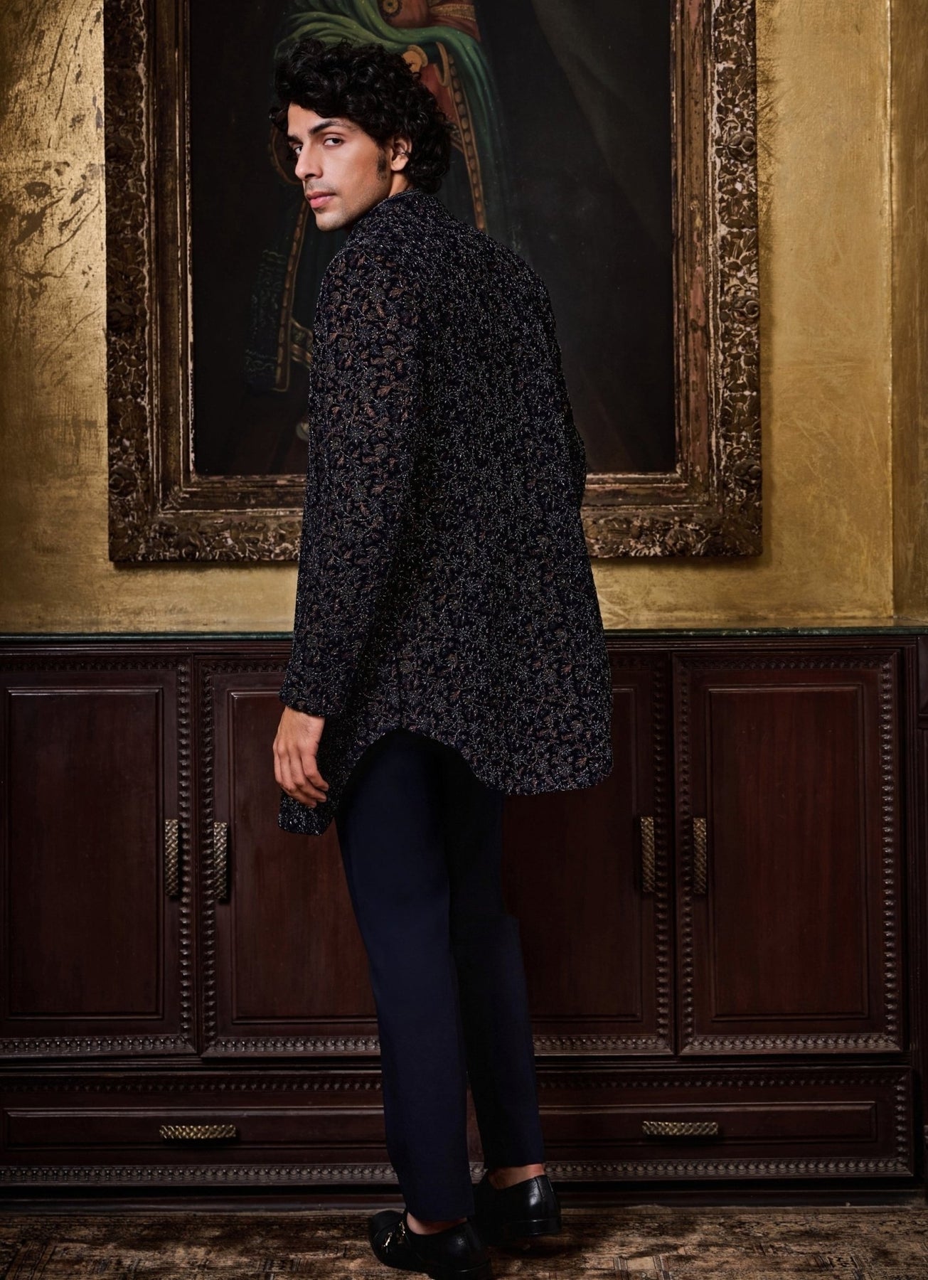 Blue Velvet Open Jacket Set Nitika Gujral - Men - Fabilicious Fashion