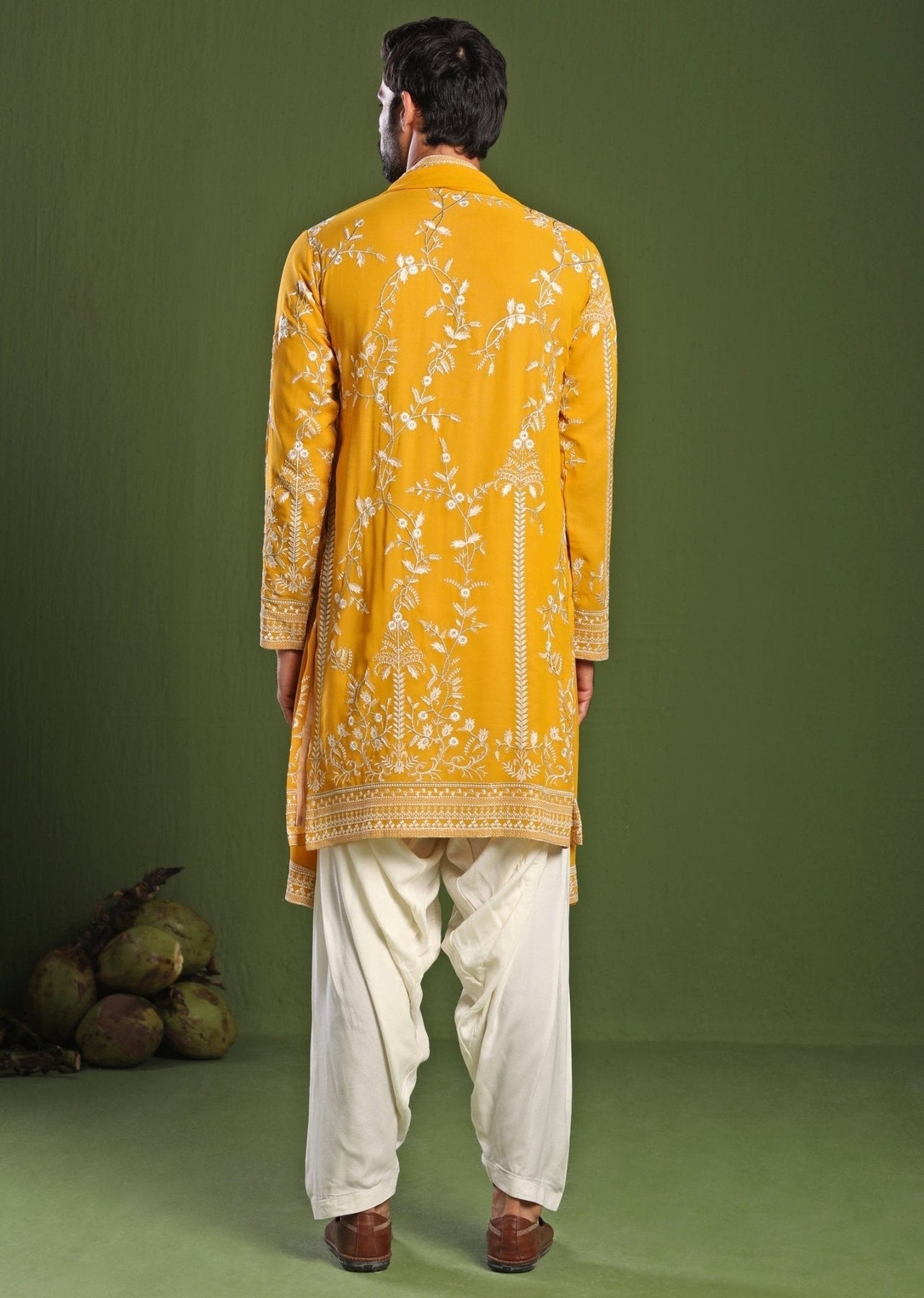 Yellow Embroidered Georgette Kurta Patiala Pant Kalpraag - Fabilicious Fashion