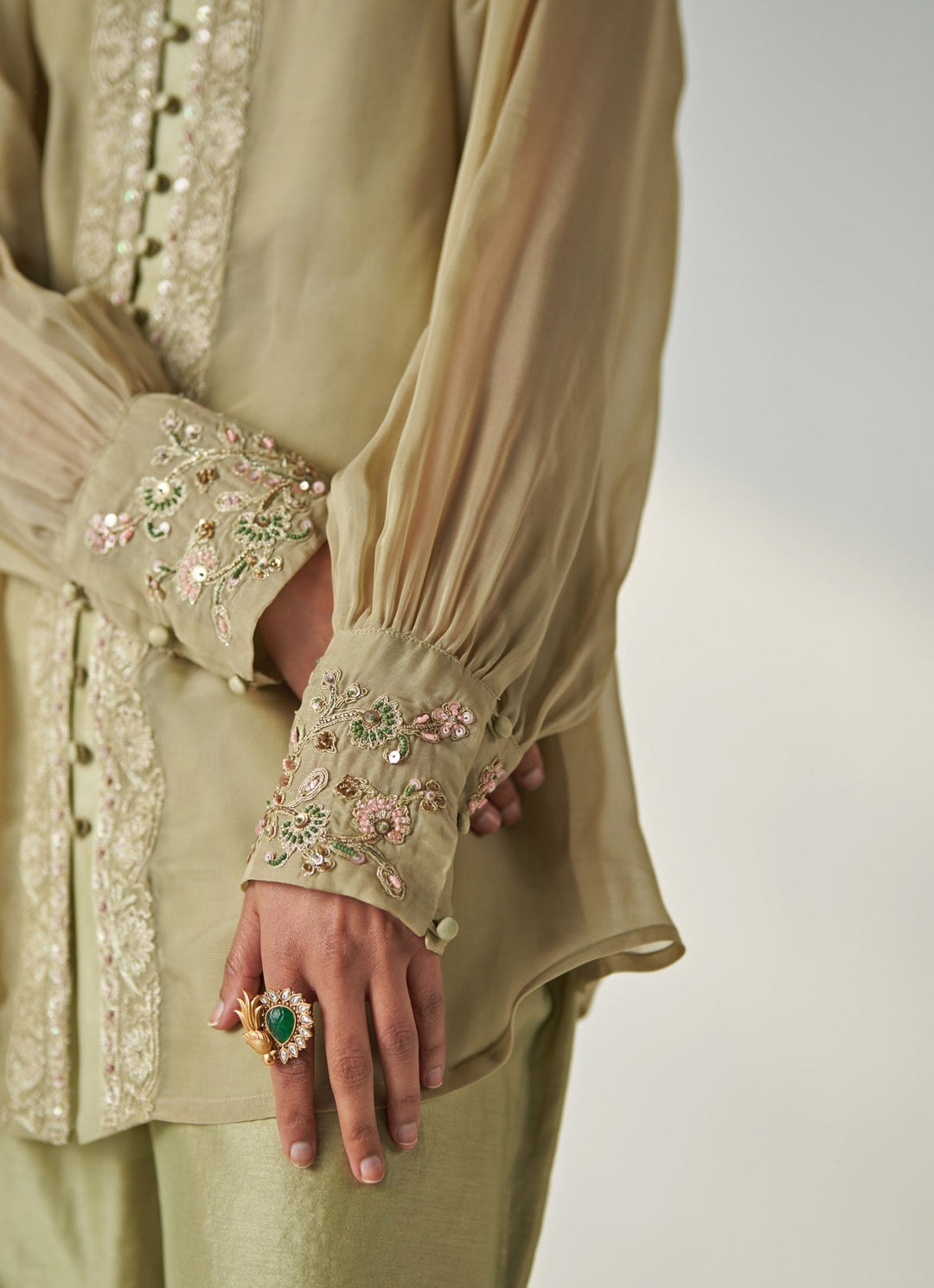 Green Embroidered Organza Shirt And Pant Set Studio Bagechaa - Fabilicious Fashion