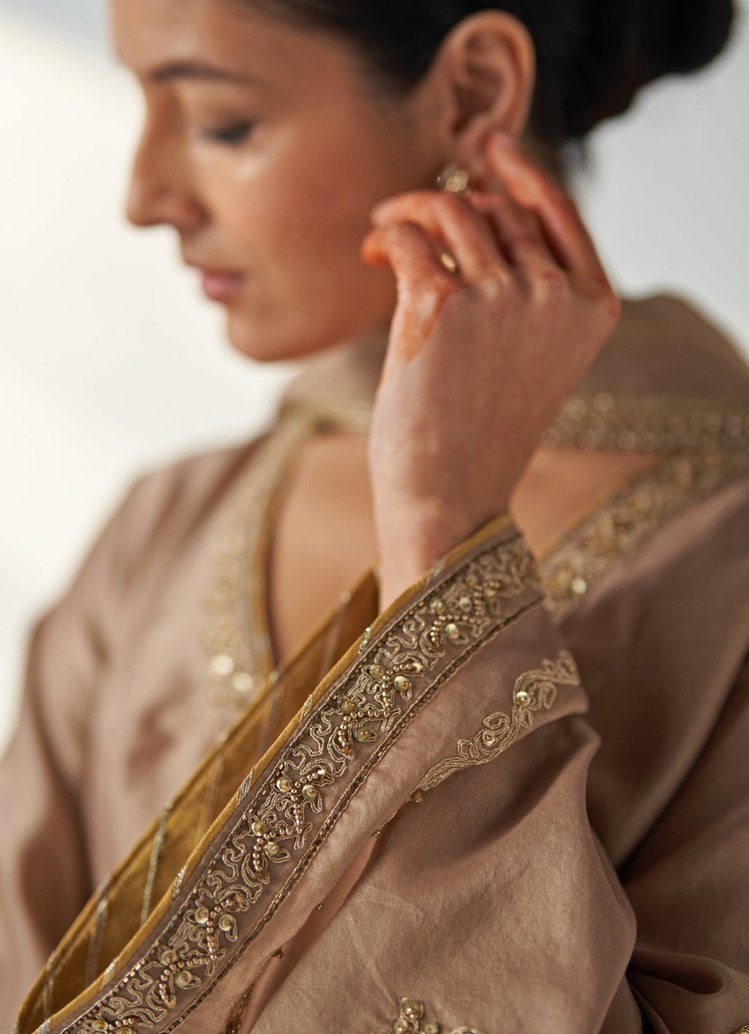 Nude Gold Embroidered Chanderi Anarkali Pants Set