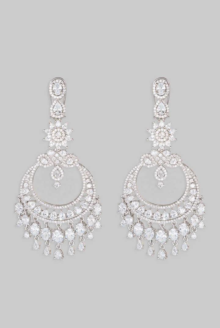 White Finish Diamond Round Dangler Earrings Zevar By Geeta - Fabilicious Fashion