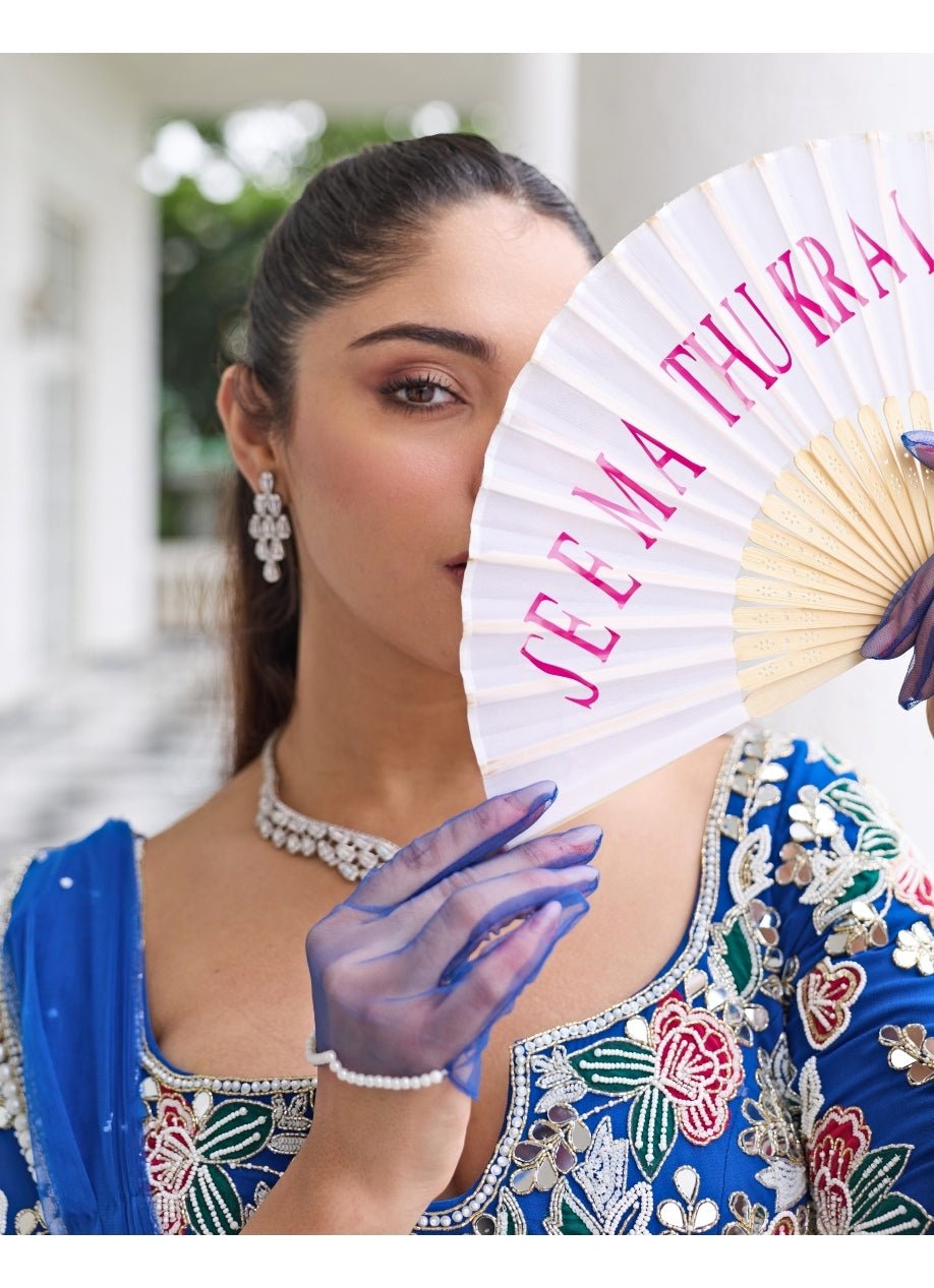 Begin your new chapter glowing in this enchanting Blue Georgette Lehenga Set made for the bride-to-be. The voluminous skirt glimmers with embroidery, while the embroidered georgette blouse adds structure and shimmer. A flowing draped soft net dupatta finishes the look with ethereal softness.