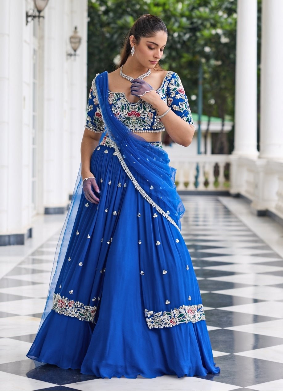 Electric Blue Georgette Lehenga Set With Draped Dupatta Seema Thukral - Fabilicious Fashion
